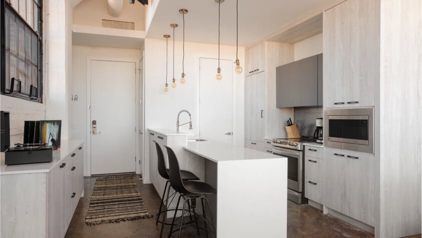 Hand-painted murals and oversized industrial windows. Open floor plans and modern appliances. Once a former manufacturing plant, The Heid was designed with high ceilings and concrete flooring. Each space includes a Roku and in-suite laundry, perfect for a weekend or a year-long stay. Start your day with a coffee on the rooftop. Or stroll through The Rail Park, a nature walk set between soaring skyscrapers. The Callowhill neighborhood is a fusion of art galleries, factories, and live music. Stay for a little or stay for a lot, The Heid has what you want.